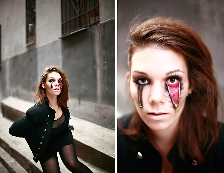 Briony is a friend of our roommate, Sriroop. And she is one awesome stylish lady so I knew right away that I wanted to be her friend and photograph her! Well, on Halloween, she showed up with this bad ass makeup involving zippers! I thought it was so cool and I made her promise to do it again for a fashion shoot. This girl sure does know what she’s doing in front of the camera and Im pretty sure she had as much fun as I did!!!