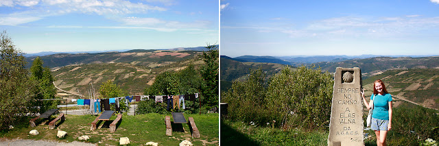 We climbed a lot this day – but thank goodness – we were so over the flatness of the Meseta. We came upon Cruz del Ferro – a very famous cross marker along the camino. Then we climbed a bit more and came to this cool little rest area. It had lots of fun signs and mementos and a bar with lots of refreshments for the pilgrims. At this point we were only 222 km away from Santiago! Almost 3/4 of the way there!